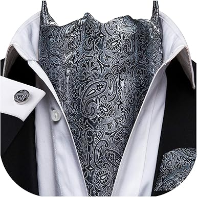 Amazon Com Dubulle Mens Black And Grey Paisely Silk Cravat Ties Jacquard Woven Ascot Pocket Square Cufflinks Set Clothing