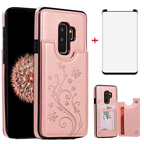 Phone Case For Samsung Galaxy S9 Plus With Tempered Glass Screen Protector And Card Holder Wallet