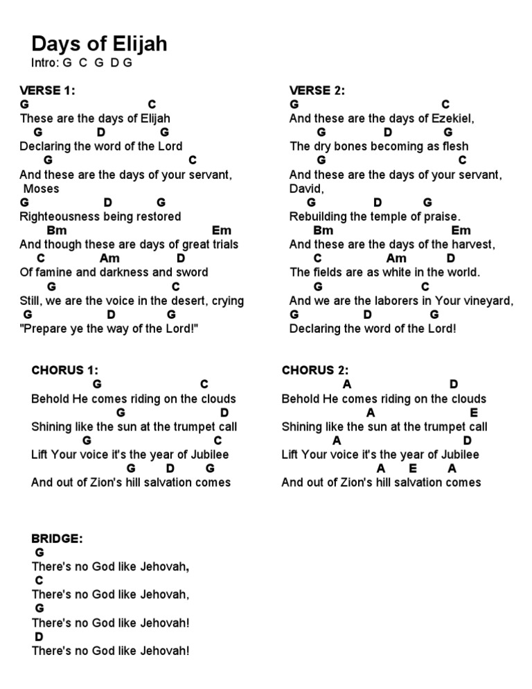 Web Please feel free to use and share. Web These are the days of Elijah Declaring the word of the Lord And these are the days of Your servant Moses Righteousness being restored.